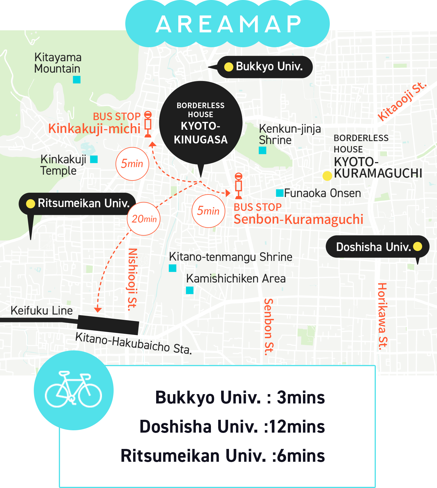 Doshisha University – 10 mins by bike