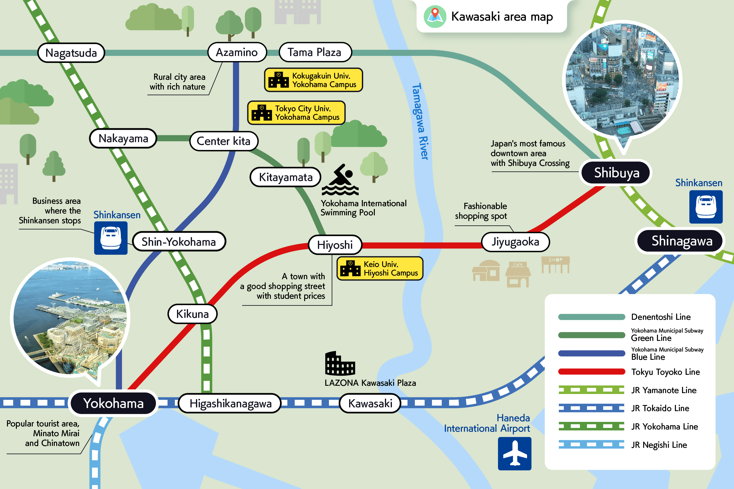 Access to a central Tokyo is very good, such as arriving at Toyoko Line Shibuya Station in 30 mins. With good accessibility and, Hiyoshi Station is a great area to start a new share house life.